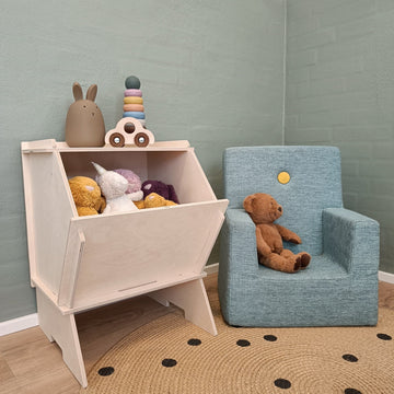 Våra hyllor, förvaringslådor med mera håller ordning på leksakerna men kan också vara en del av leken. Plötsligt blir det roligt att vara med och organisera sitt rum.