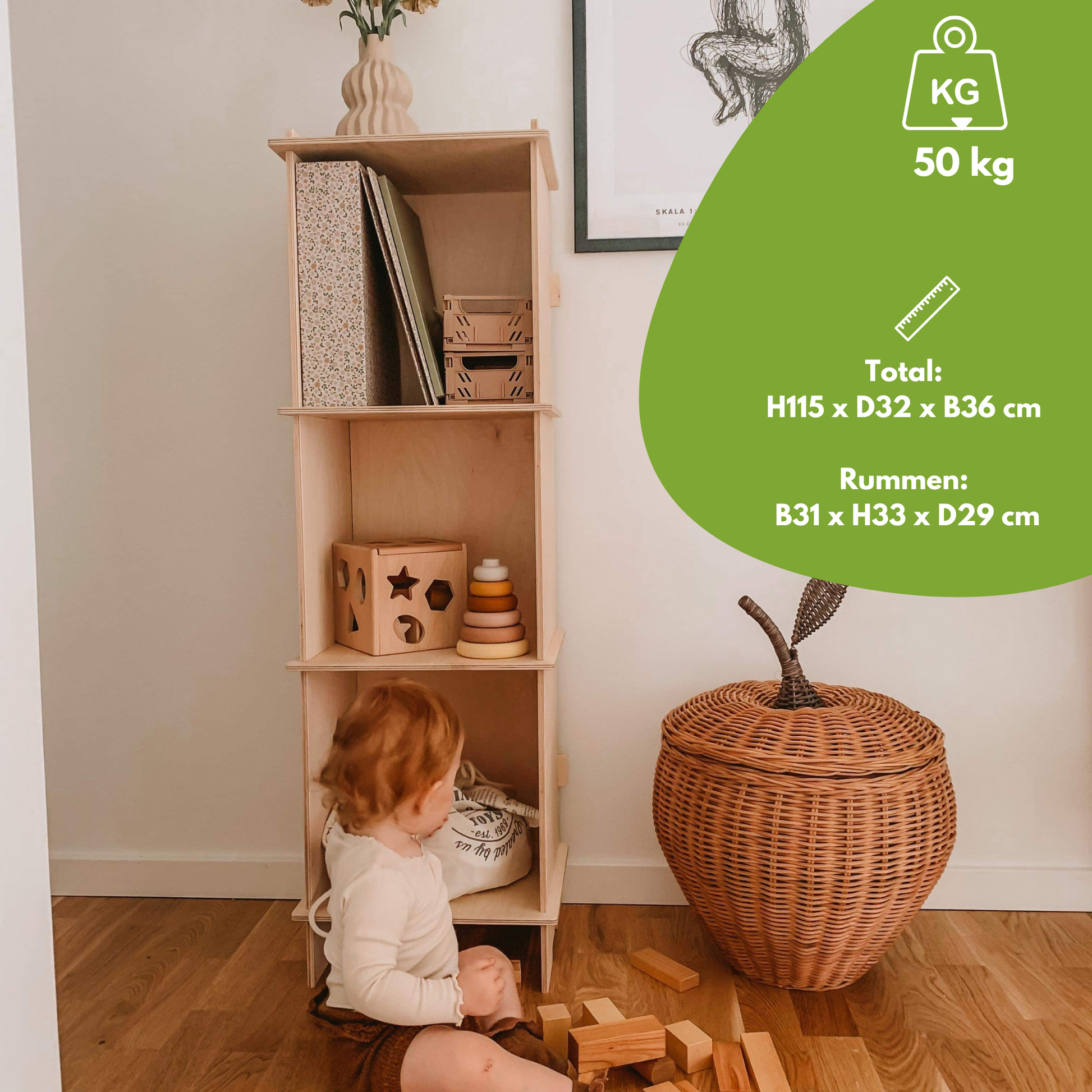 Med vår minsta rumsavdelare / kubhylla Rasmus med en rad och totalt tre fack får du