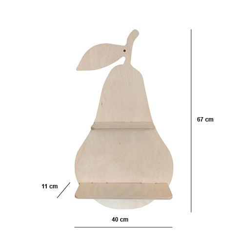 Vägghyllan Birgitte har designats som en päron och är en mycket dekorativ lösning för prydnadsföremål, dekorationer och andra småting.